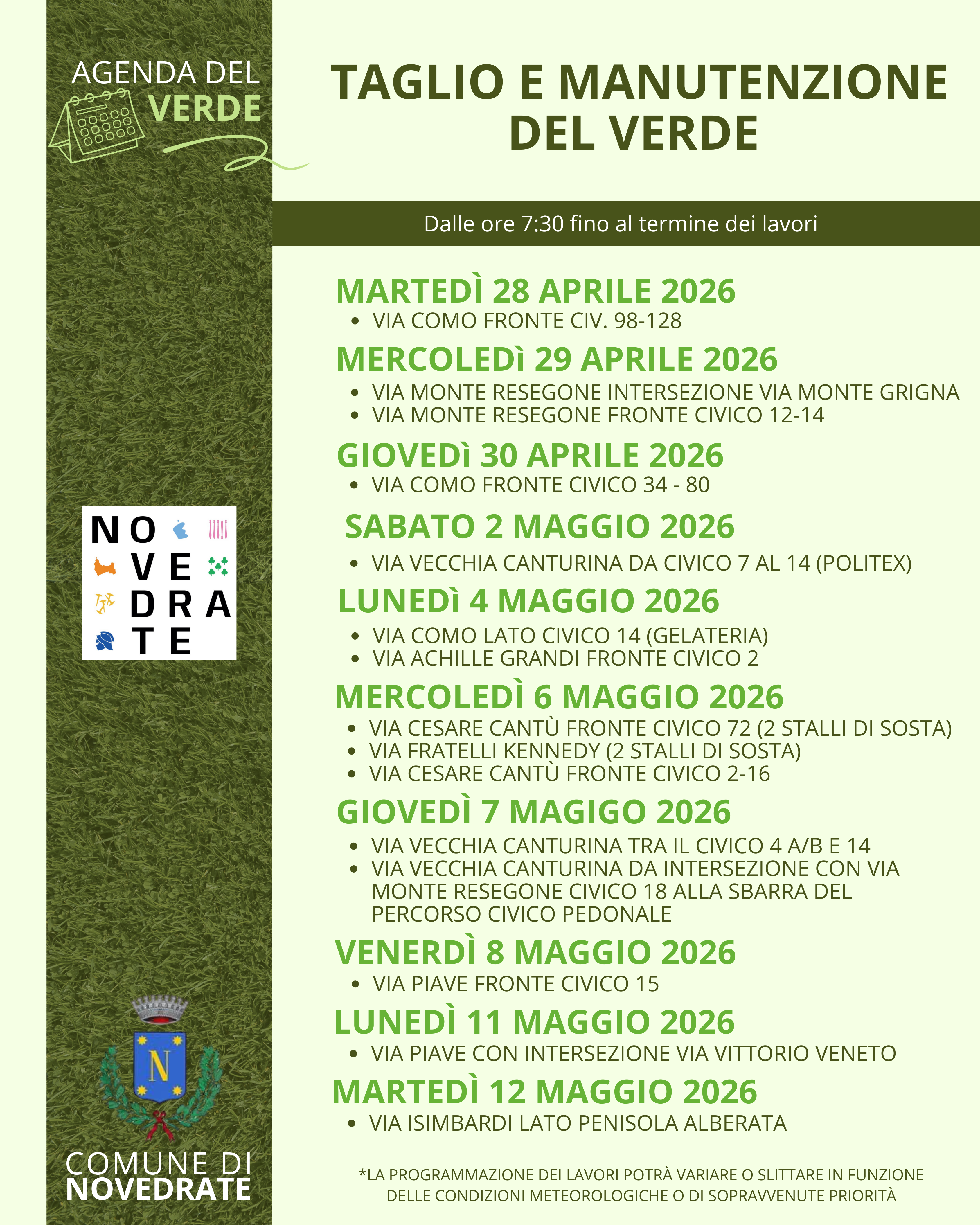 Nell'allegato il programma dei tagli e della manutenzione del verde